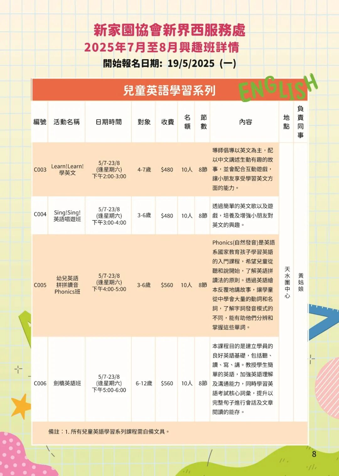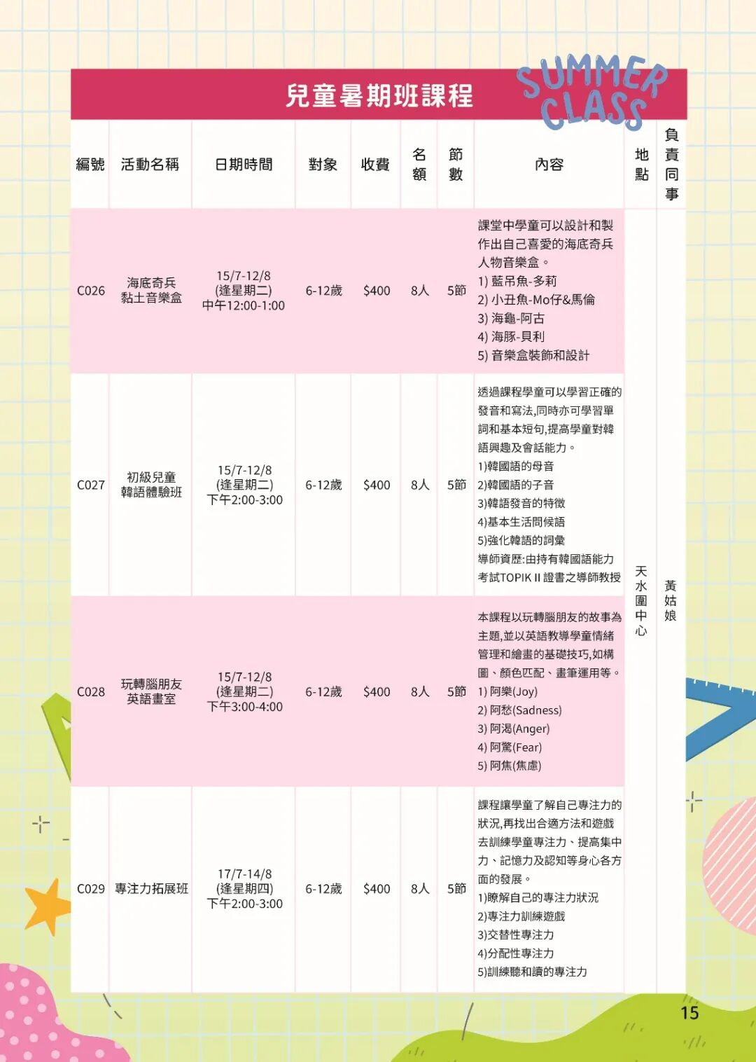 导读:🔥2025年7-8月份中心興趣班🔥現已接受報名🥳如有任何問題,歡迎致電 2815 5009 與黃姑娘/陳