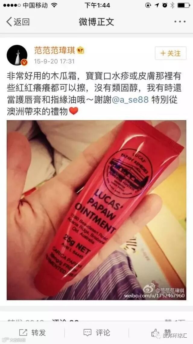 有一种东西,昆凌用,袁弘用,林依晨,王菲用,彭于晏用,范玮琪用,刘诗诗用,贝克汉姆儿子也在用, 它就是号称万能的澳洲Lucas木瓜膏,蚊子咬了抹一下,嘴唇干了抹一下,睡觉起来黑眼圈抹一下,烫伤烧伤抹一下,娃娃湿疹抹一下!一小支超级无敌耐用,木瓜膏在澳洲可以说是国宝级产品