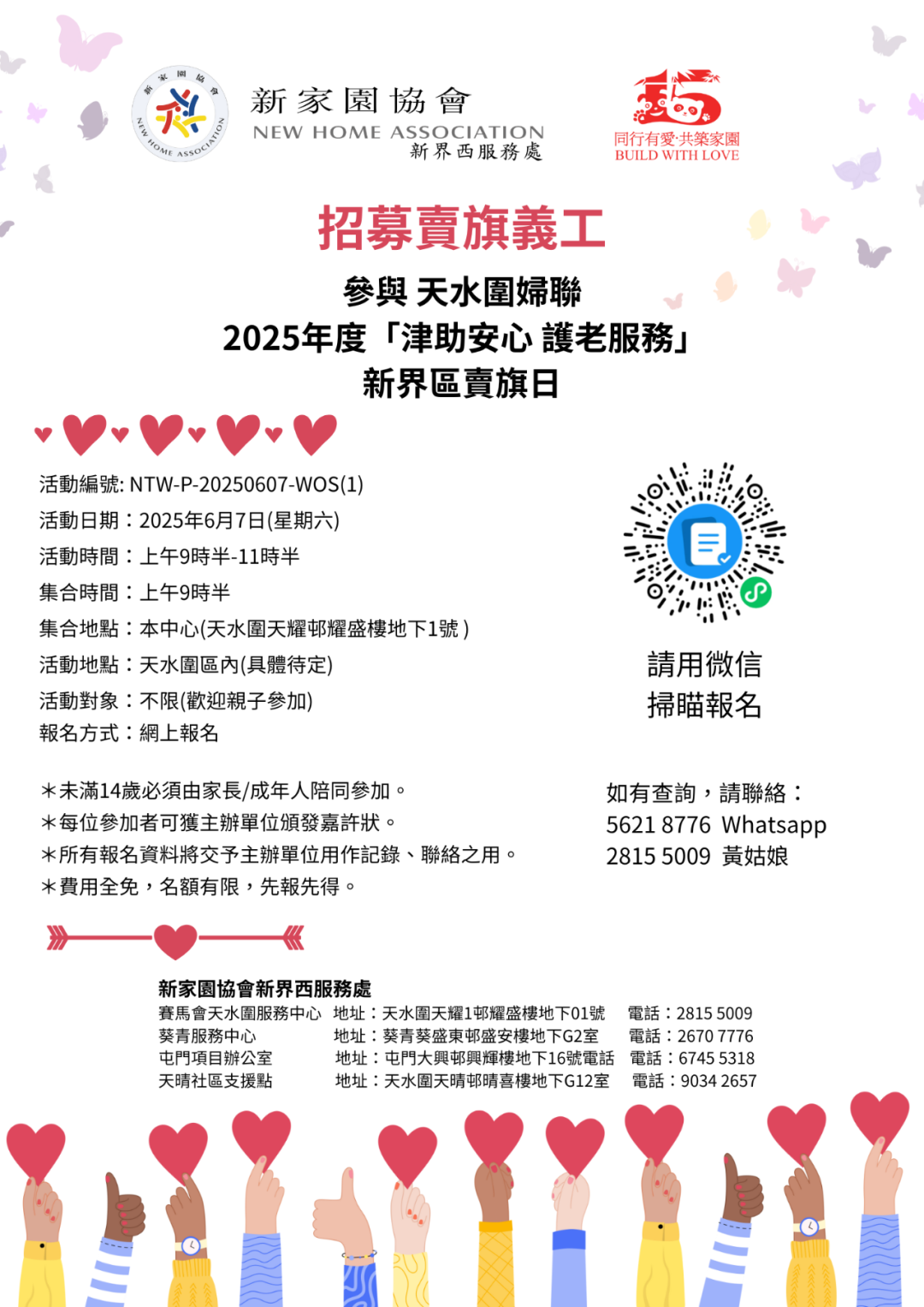 【招募賣旗義工】參與天水圍婦聯 2025年度「津助安心 護老服務」新界區賣旗日