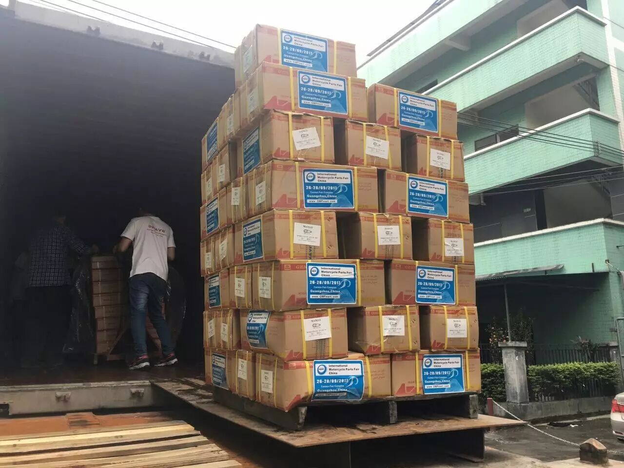 “2017中国国际摩托车零部件展览会”标识和宣传册已随着中国品牌的摩配产品去往巴基斯坦的路上!