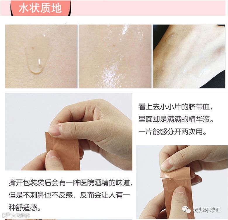 脐带血引流精华,用法很怪,可以作为精华,也可以用在护肤最后一步~因为吸收极强,可以把你之前的保养品逼进皮肤里,用完紧紧的感觉!抗衰老一定要早,选对抗老化产品是关键每小袋分两次使用 精华吸收极快, 第二天早上 皮肤 嫰滑 透白 超神奇 !!!!