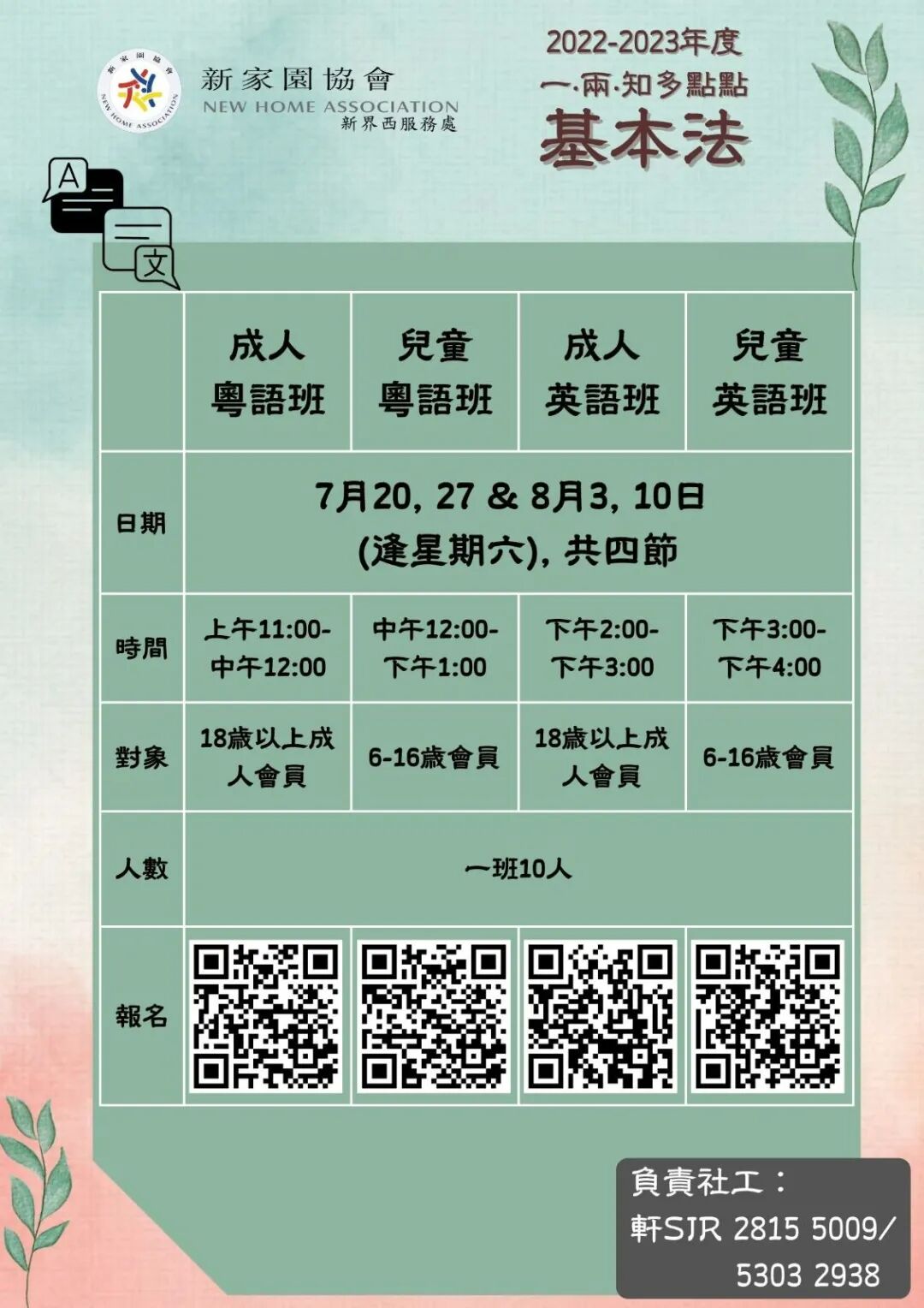 知道部份會員都想提升自己的語言能力,所以暑假期間我地為大家舉辦針對不同年齡的語言班組,費用全免!