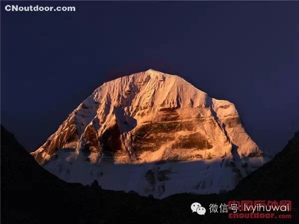冈仁波齐海拔6656米,为冈底斯山主峰,它被藏传佛数、西藏苯教、印度教和印度耆那教共同信奉为宇宙世界中心。冈仁波齐在藏语中意为“神灵之山”,在梵文中意为“湿婆的天堂”。形似橄榄,峰顶如七彩圆冠、周围像八瓣莲环绕、山顶常年堆积白雪,如水晶浇砌玉镶冰雕,顶尖直插云霄。中国户外网马年转山专题报道,关注微信:CNoutdoor