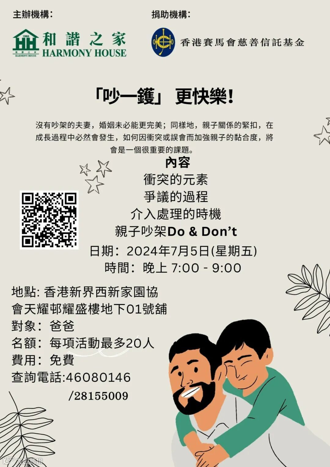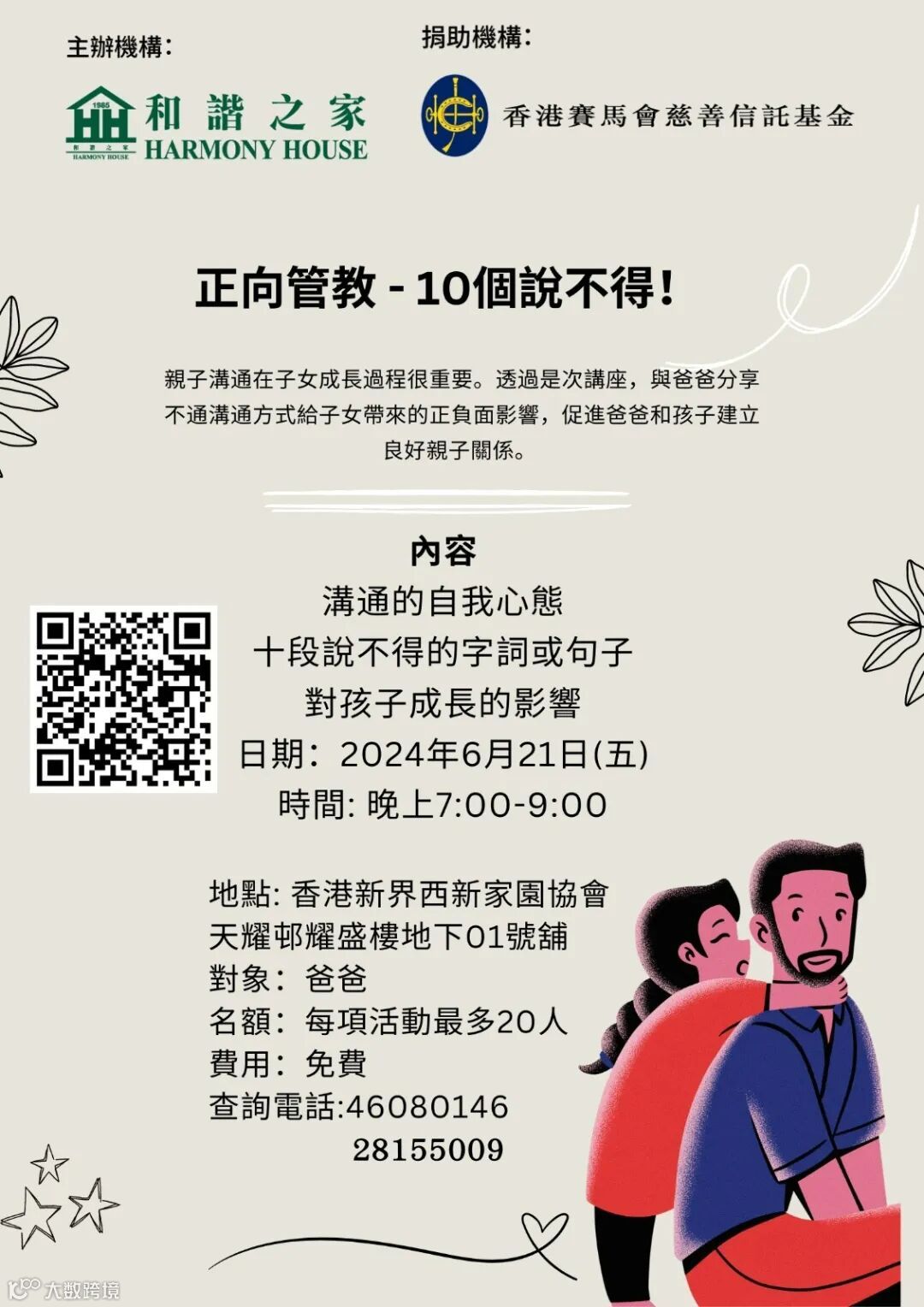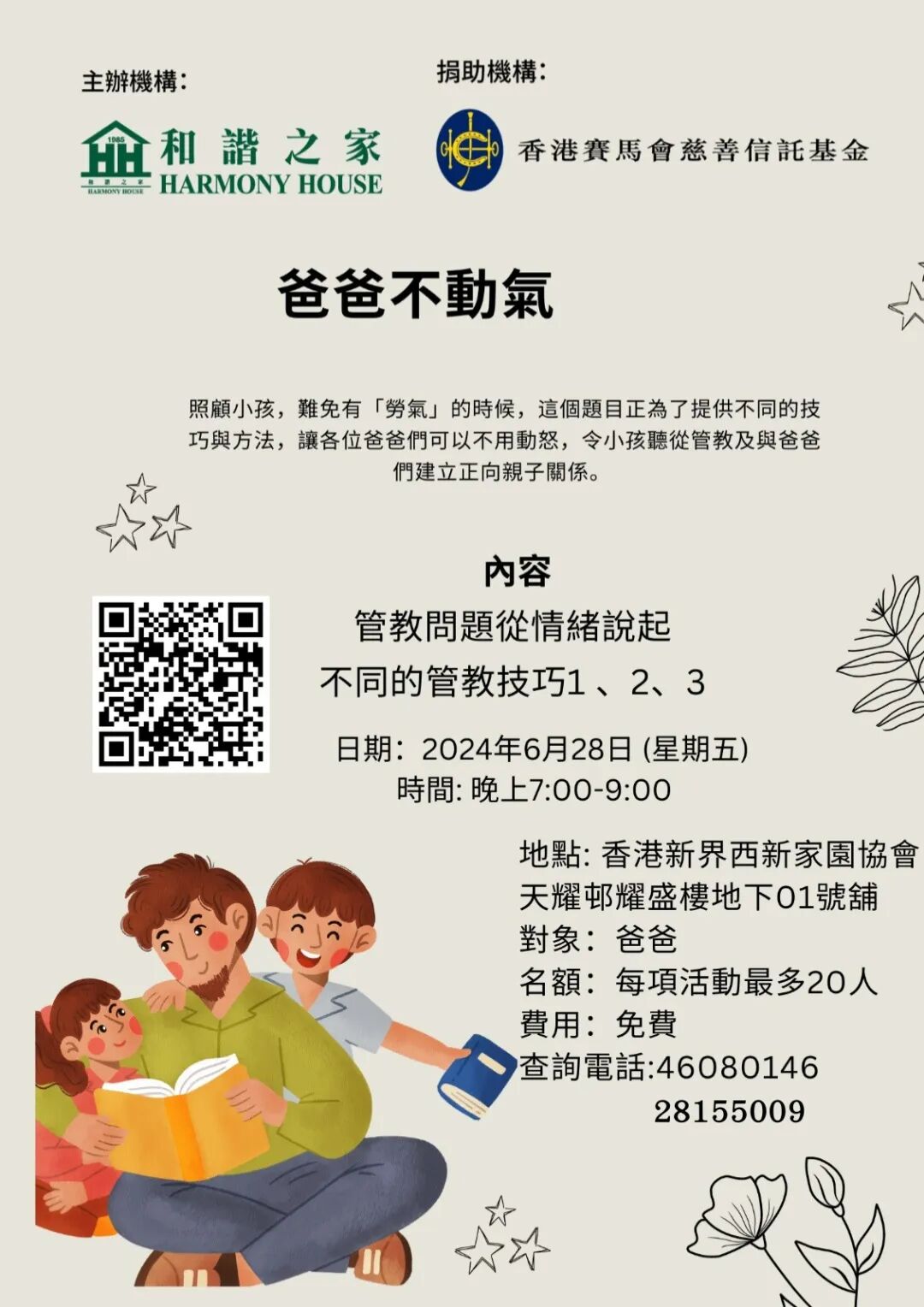 想親子關係更親密?那就要加入我們的活動啦!透過不同主題內容的學習分享,強化男士在家中的爸爸形象和角色,從而加強親子管教技巧,達至正向教育和建立良好親子關係,推動爸爸與孩子共同成長。🥰🥰🥰