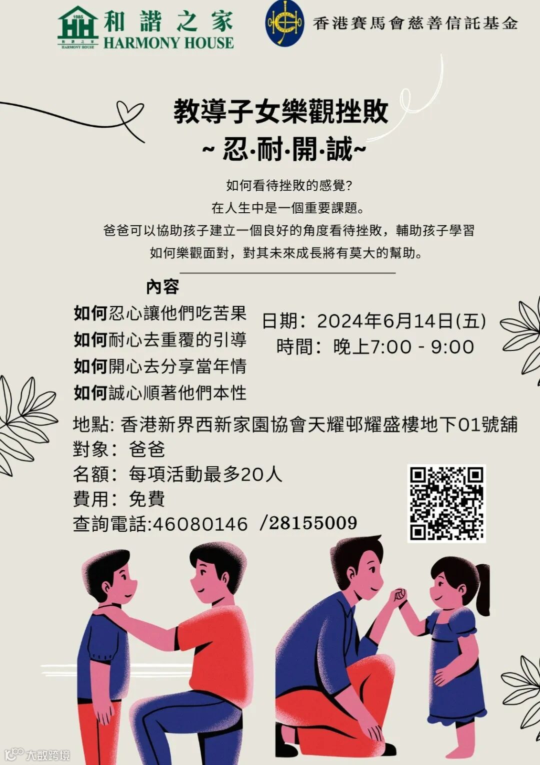 1️⃣【14/6教導子女樂觀挫敗--忍-耐-開-誠】: 晚上7:00-9:00