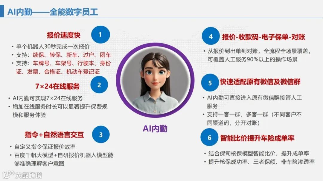 我们的设计逻辑是这样的:首先整合渠道预设的核保规则(例如基于评分体系的规则),同时实时吸收保险公司反馈的核保建议。更关键的是,大模型会持续学习AI内勤的核保经验,实现动态自动调优,直至完成保单核保。这样一来,从报价、核保通过到生成缴费二维码的全流程,都无需人工干预——这正是AI内勤实现人工内勤全流程自动化的核心价值。
