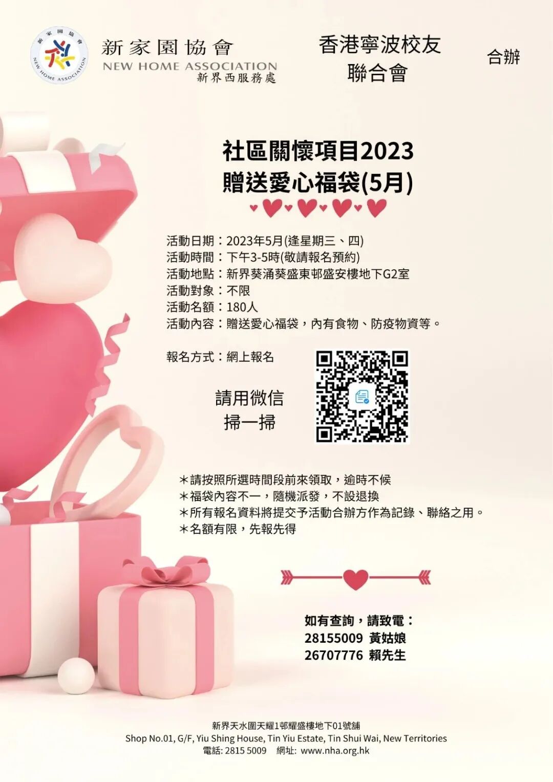 活動內容:贈送愛心福袋,內有食物、防疫物資等。