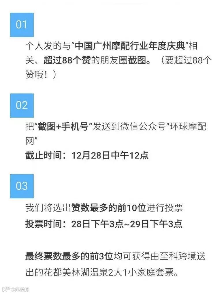 为更好地服务摩配行业,努力为行业发展“造温暖”,至科跨境现举办“把温暖带回家”活动,只要你衷心祝贺本次年会,即有机会获得价值700元的花都美林湖温泉2大1小家庭套票,把温暖带回家。