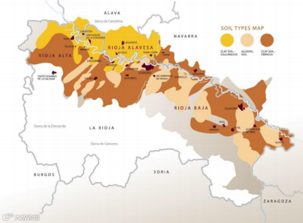 从产区的行政划分来说,从西北角到东南角大约120公里。在这样的范围内,里奥哈有着不同的微气候。东部的区域更多地体现出地中海的影响,而西边的产区则更多受到大西洋的影响。除此之外,里奥哈葡萄园的海拔从300米到700米不等,这也直接影响了气温,从而进一步影响了葡萄的生长和成熟,为这里葡萄酒风格的多样性奠定了基础。