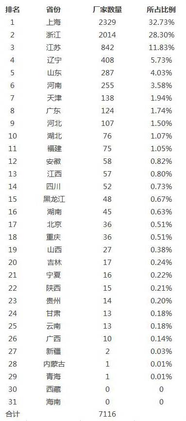 导读:全国轴承(包括配件)生产企业省域分布状况