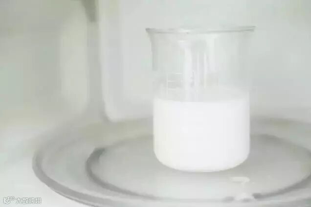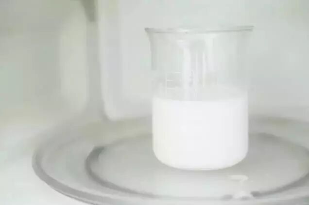 ① 将牛奶放入微波炉,中火加热10s左右