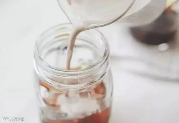 ④ 依次倒入冰可乐,黑咖啡,最后倒入调好的巧克力牛奶