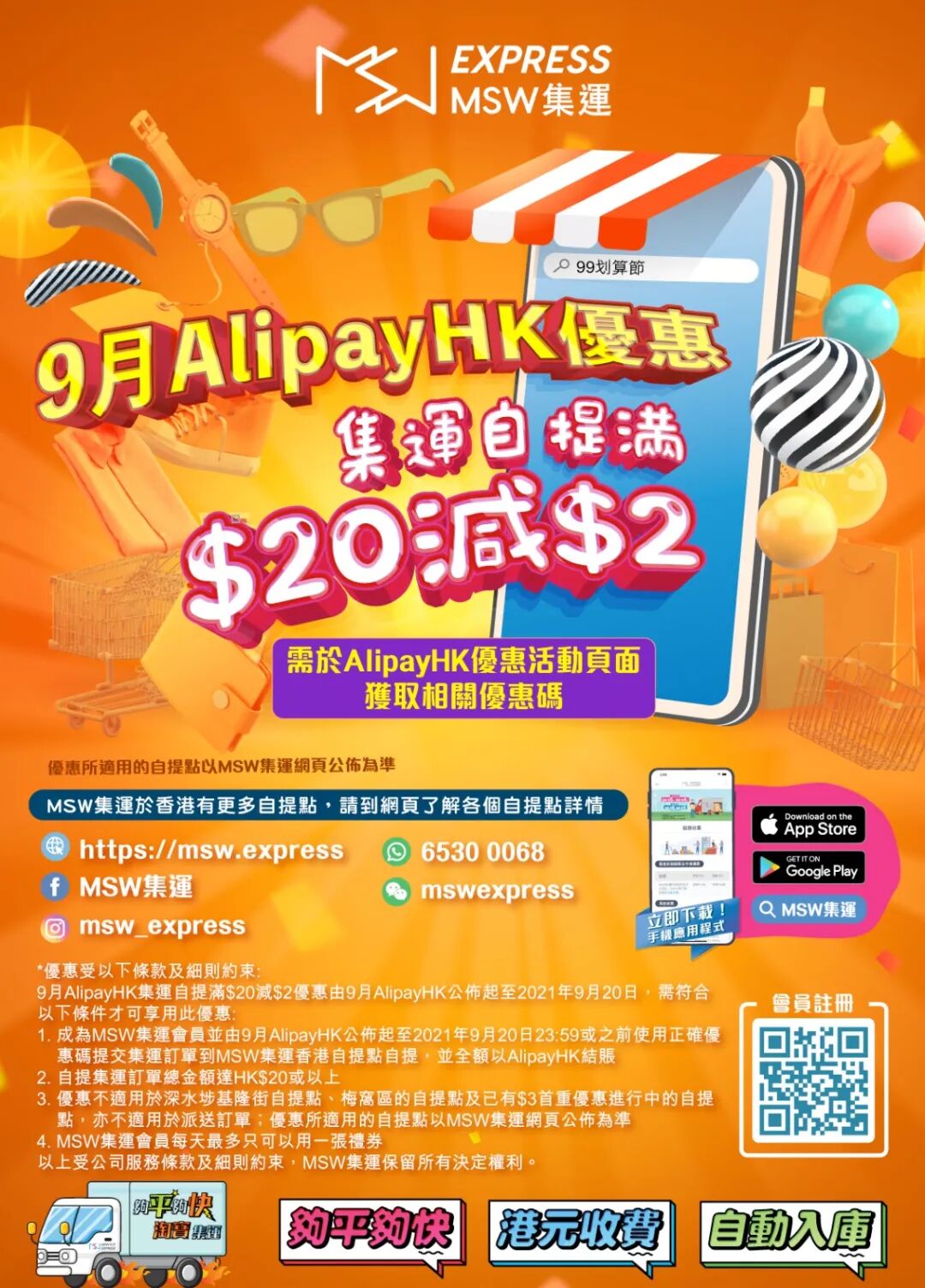 *MSW集運推出9月AlipayHK集運自提滿$20減$2優惠*