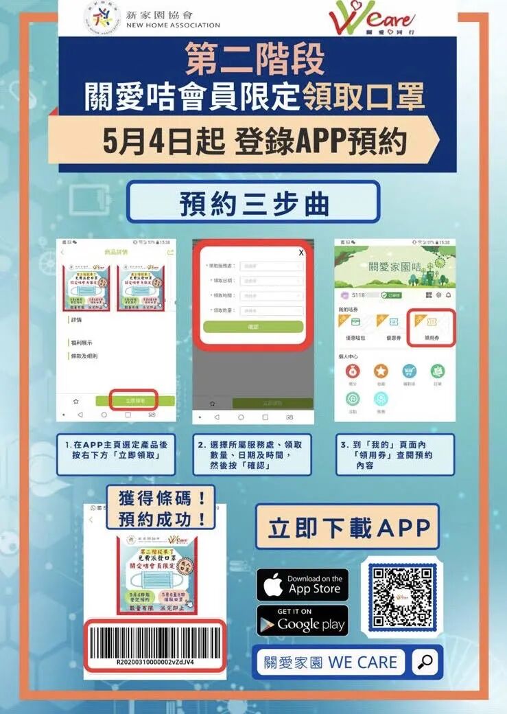 导读:第二階段-關愛咭會員限定領取口罩 5月4日,下午3時起登錄APP預約詳情請參閱以下海報