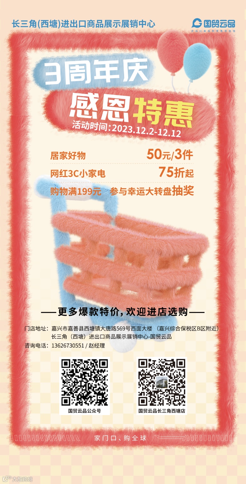 时光如梭,我们已经三周年啦,为感谢大家一直以来对我们的支持,一年一度的店庆活动即将开始啦~