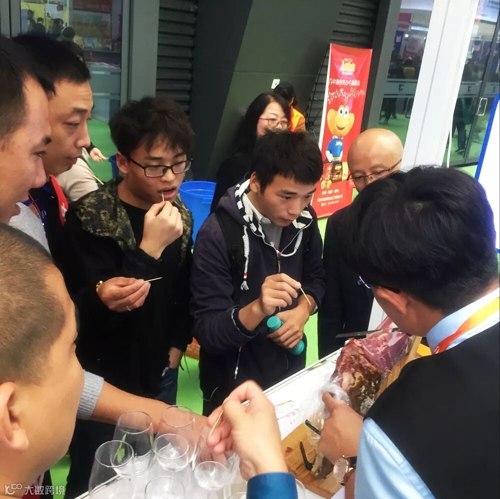 展会现场,到访客户品尝西班牙火腿