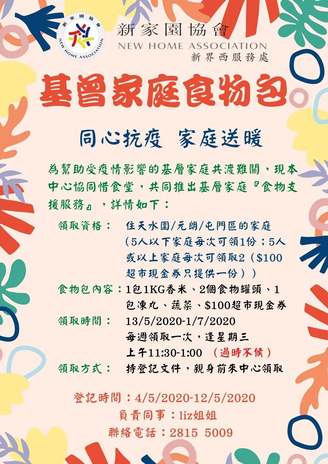 基 層家庭食物包計劃 為幫助受疫情影響的基層家庭共渡難關,現本中心協同惜食堂,共同推出基層家庭『食物支援服務』,快啲來登記啦!