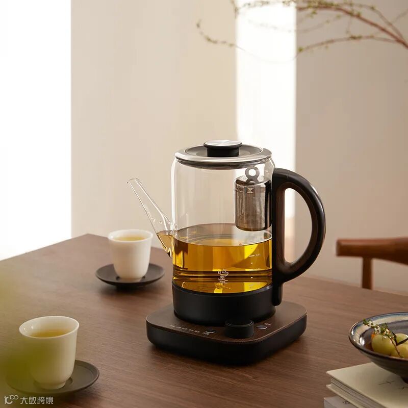 简约壶身,手柄处的胡桃木纹,搭配全身通透的高硼硅玻璃,煮茶时候也能观察茶色变化,十分治愈。