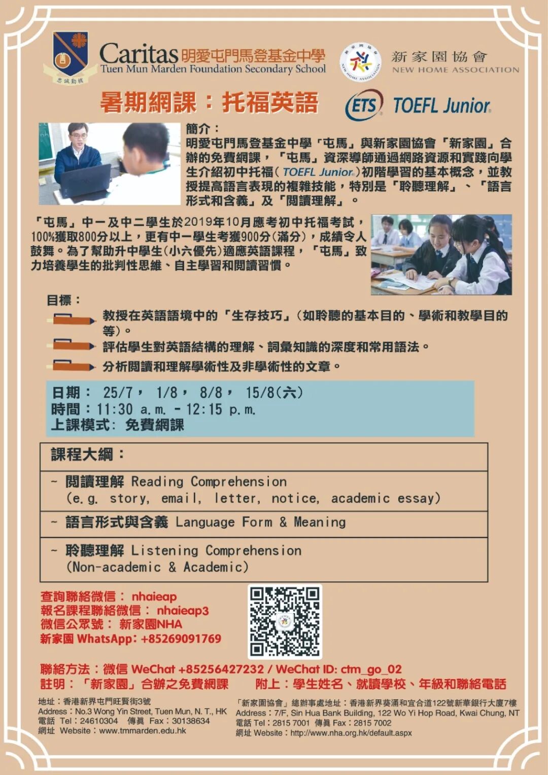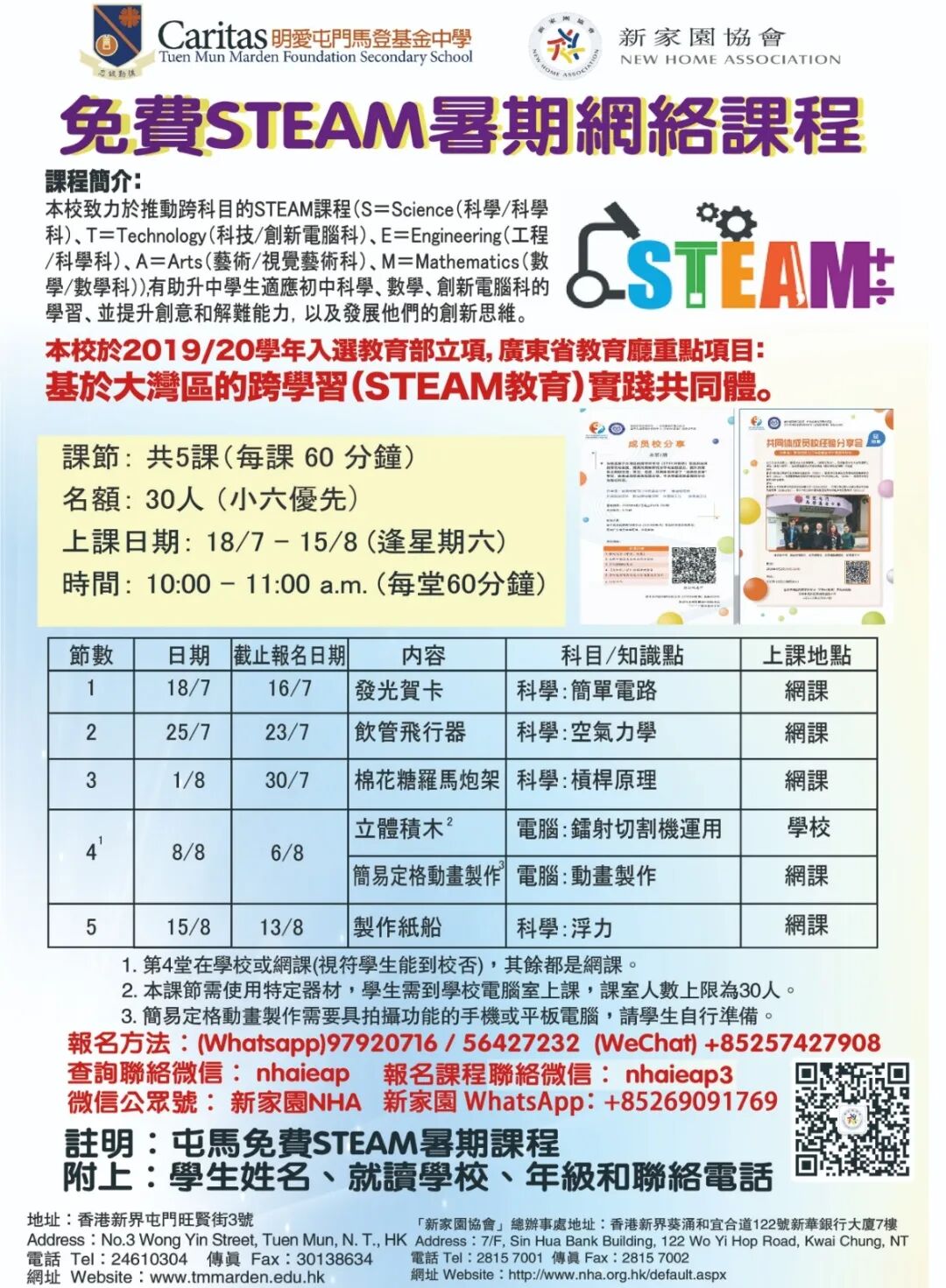 本協會近期攜手明愛屯門馬登基金中學(下稱「屯馬」),合辦兩個暑期網絡課程,由「屯馬」資深老師以網絡授課的方式,向學生傳授專業英語、科技與電腦技能,幫助學生提高相關科目學習能力,鍛煉分析力、邏輯力,培養創新思維。