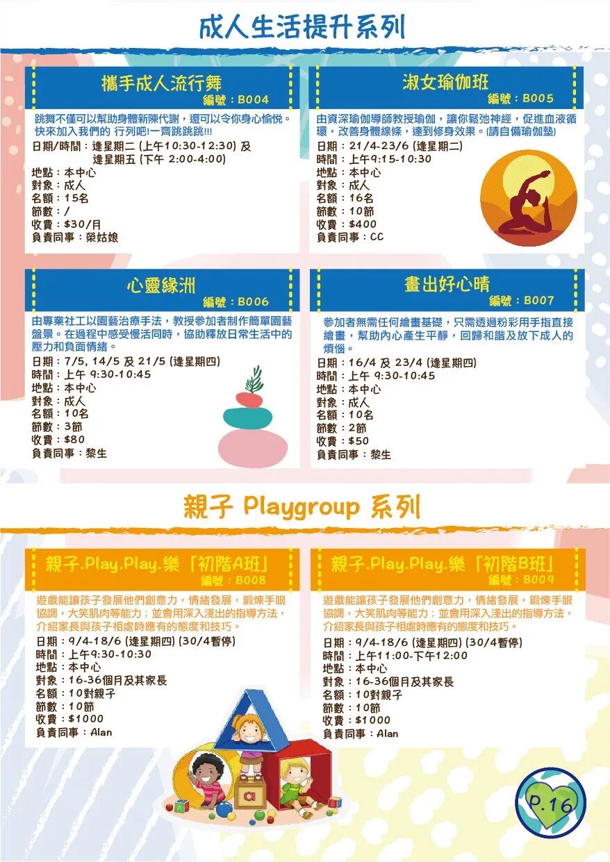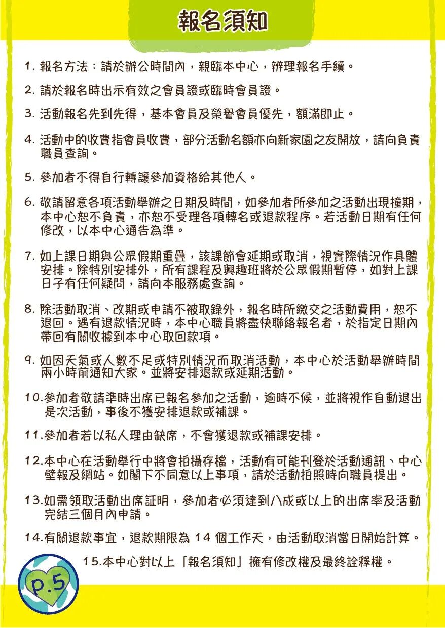 本中心保留所有更改課程/活動日期、時間、地點及導師等細節的權利。