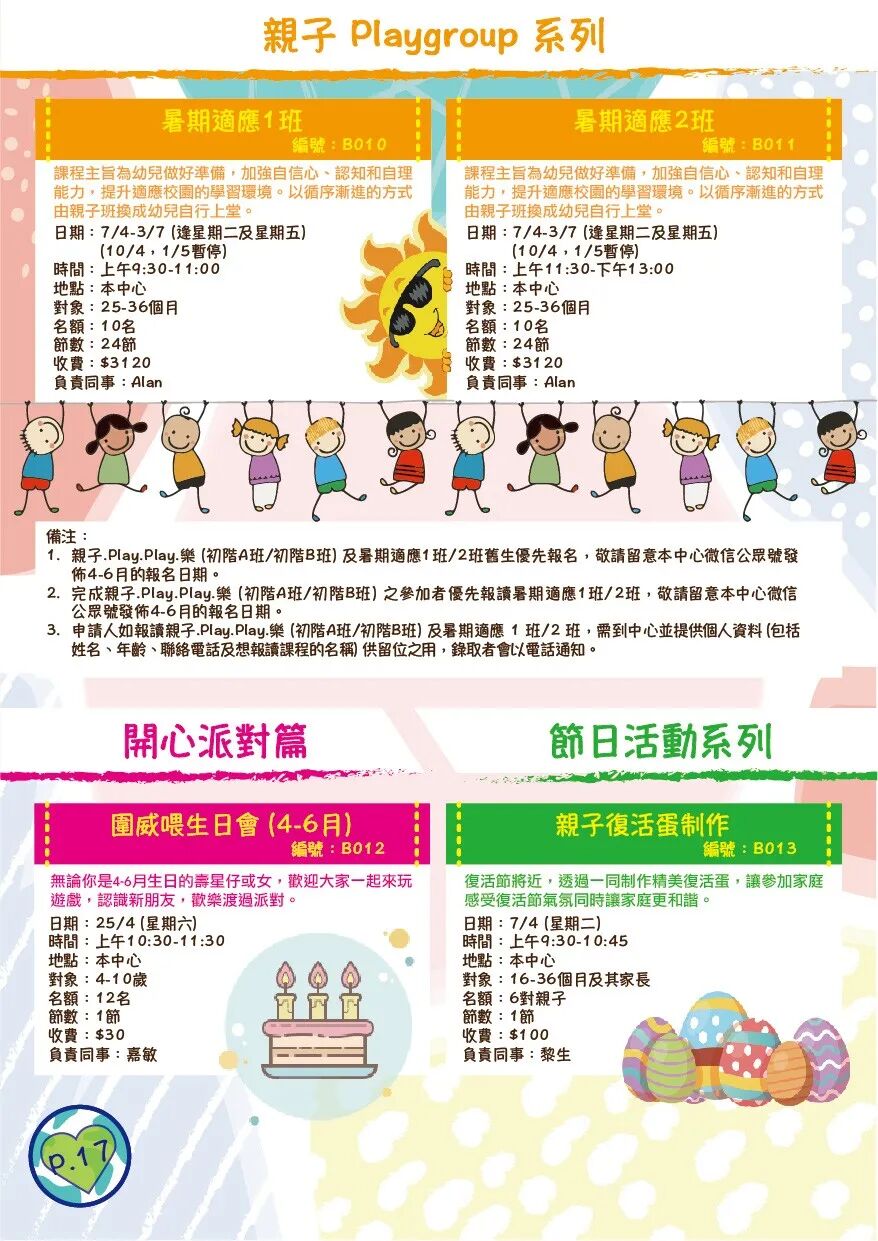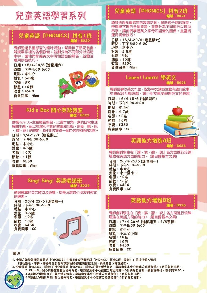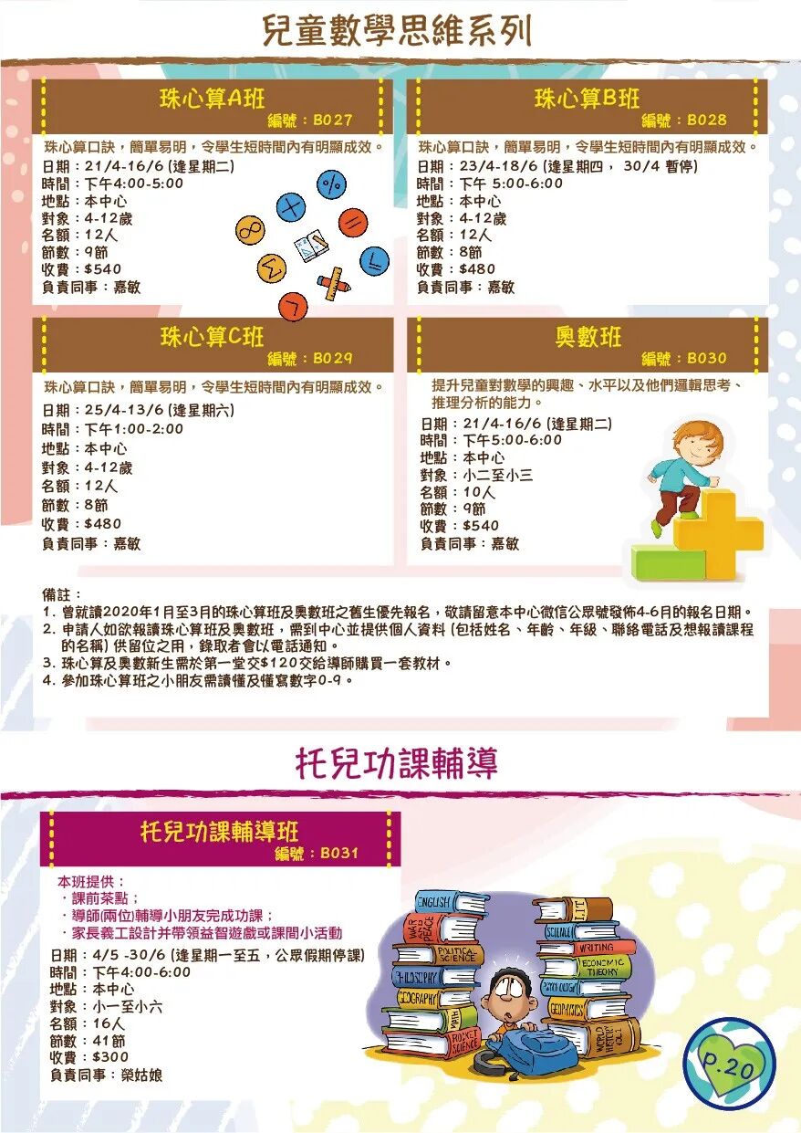 ***有關2020年4-6月活動報名日日期,請留意本中心公眾號發佈。
