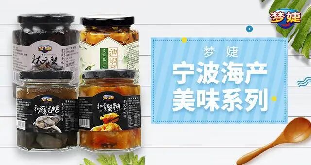 宁波知名品牌 梦婕海产 系列(共7个品种,泥螺、蟹糊、油焖笋、状元蟹、油赞子等及组合)每一味食材都是千挑万选,原产地鲜活捕捞上船的。来自于深海的味道,一次尝遍多种海鲜品类、多种口感,体验一场海鲜的完美味蕾盛宴!