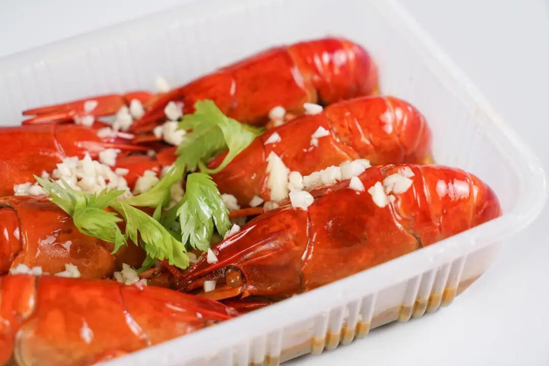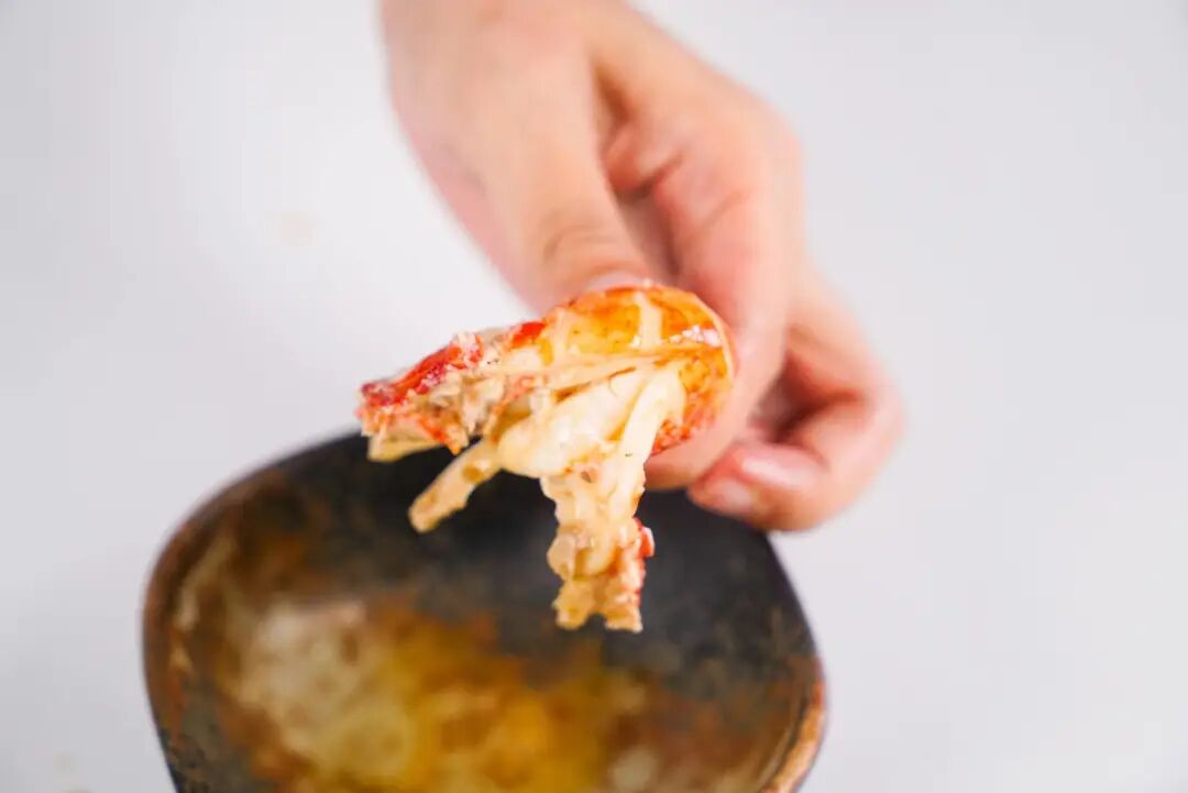 澳洲蓝龙虾虾腹部干净无泥肠,虾鳌大如蟹钳,虾头的虾膏鲜美可食。虾肉紧实、鲜甜、脆弹有嚼劲。虾肉撕开可以看到丝丝莹亮的肉质纤维,微微拉车,弹劲明显。