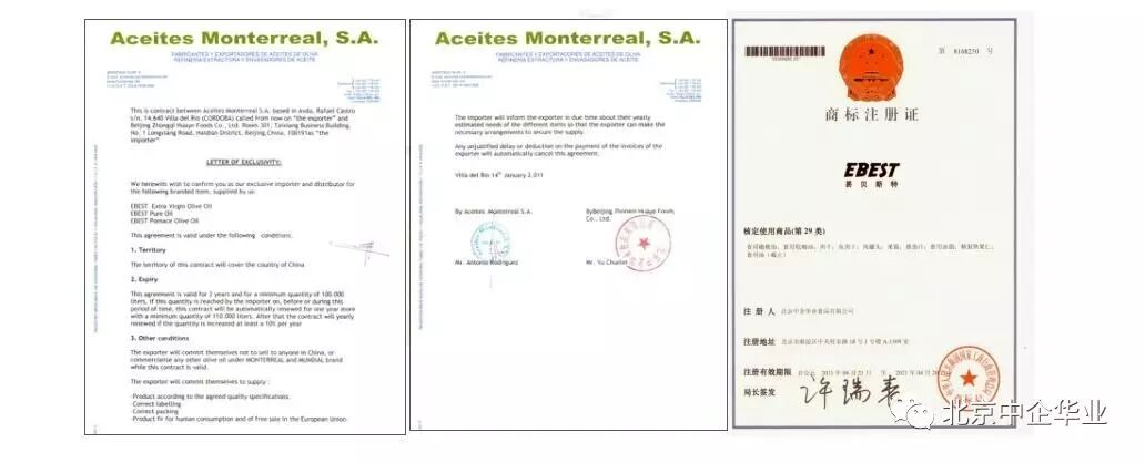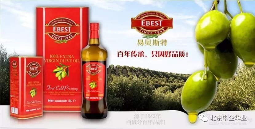 中企华业为“易贝斯特”橄榄油在中国地区的独家代理商,并取得了商标注册证,在公司代理的优质橄榄油品牌中性价比最高,是公司主推的品牌之一。