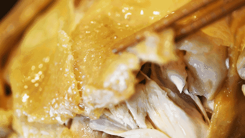 整鸡开袋,徒手撕开是享用盐焗鸡的仪式感。接下来就是你与鸡肉的第一次接触:选一块你最爱的部位,塞入口中,鸡肉和鸡皮连同包裹在肉里面的汁水也被全部吸入口中,闭上眼睛,仿佛可以听到味蕾绽放的声音。你还可以搭配一罐肥宅快乐水或是啤酒,让舌头在鲜嫩的鸡肉和刺激的气泡中徘徊。一不小心,舔舔手指,一顿饭因一只鸡变的无比美妙。