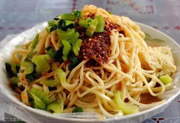食材:碱面500g、榨菜100g、辣椒油适量、盐适量、香葱20g、香菜20g、花生酱100g、香油少许、味精1g、熟花生末20g、胡椒粉2g、醋2g、千张50g