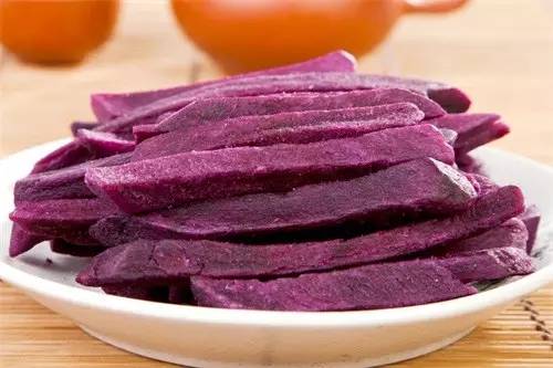 紫薯作为薯类食物的一种,其中含有大量的膳食纤维,经常食用紫薯能够使人体摄入大量的膳食纤维,从而能够达到通肠助便的功效。
