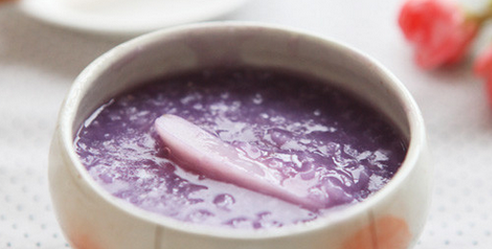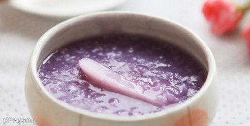 食材:粳米100克,紫薯1个,山药150克,冰糖、水适量