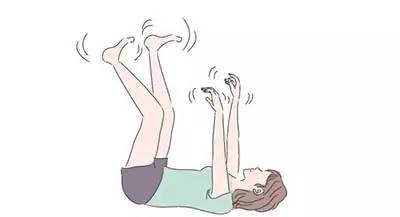 可以躺瑜伽垫或毯子,其实直接躺床上就可以啦。眼睛看上方,四肢向上伸展,肩膀要放松,手腕和脚踝各自摆动30秒。可以帮助血液循环,长期坐办公室的妹纸们一定做啊,可以消除水肿和肿胀。