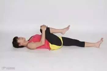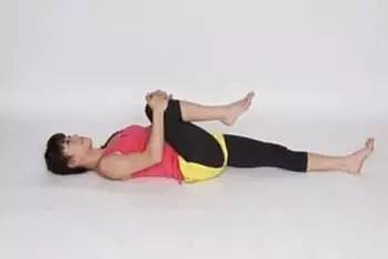 如图,先平躺,用手抱住其中一个膝盖,膝盖要尽量往身体方向靠,另一脚要伸直,借此拉伸大腿后侧的肌肉,还可以拉紧背部和手臂的肌肉。