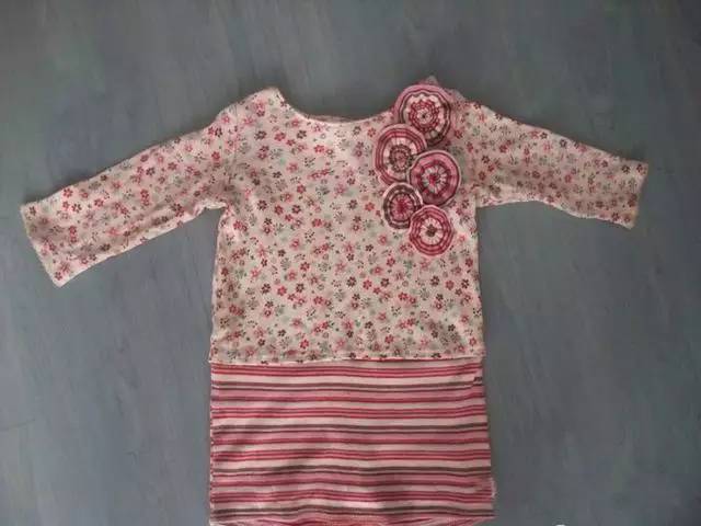 这样的小裙子,找块儿亮丽的布块在裙摆打上褶皱之前的连衣裙越穿越短,剪掉上半部,,腰部做些设计,小裙子还可以再穿哦!