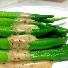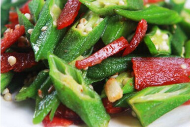 3.将作法2的淋酱淋在作法1的秋葵上即可。