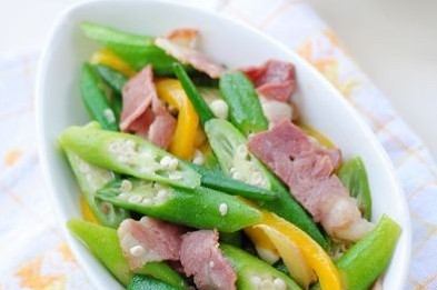 1.咸肉片炒秋葵