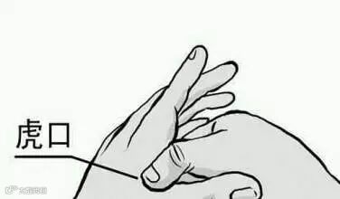 “虎口”,指手背大拇指和食指之间的部位,其正中间有合谷穴。