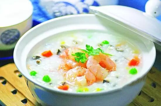 材料:大米,玉米粒,胡萝卜,香菇,火腿,虾仁,葱花