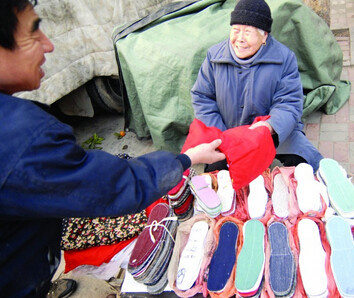 天凉了,他们要迎着如刀的寒风,守候在摊前,三角五角地挣回他们的生存所需。寒冷和炎热一样在他们的脸上留下印记,一些姑娘和少妇的脸上、手上生了紫红色的冻疮,肿胀的手上绽着一道道皴裂,裂缝被污垢染成黑色。