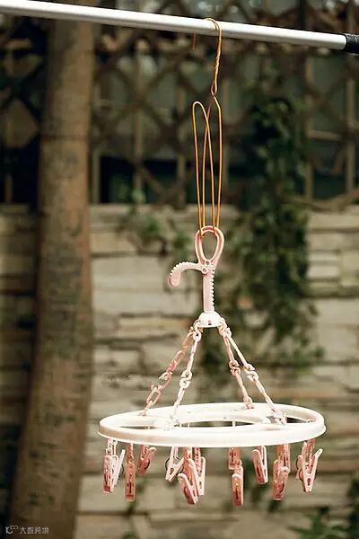 圆形的晒衣夹通常是直接勾在晒衣桿上,但若挂的太高,不方便使用时,可以利用衣架来调整高度,增加便利性!
