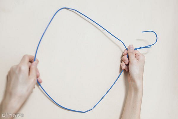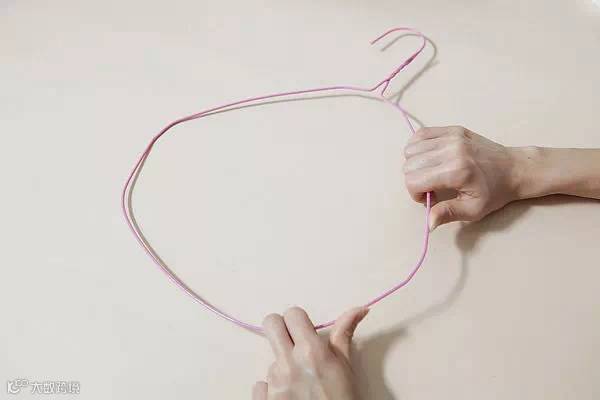 做法:将衣架往下拉后,再慢慢延着四周调整成圆形弧度。