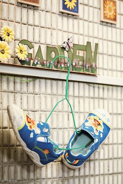 不必花钱买鞋子专用的晒鞋架,只要 3 秒就能自制。使用时可以依鞋子的大小尺寸,调整两侧的弯曲弧度,会更好用。