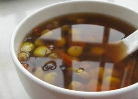 材料:黑木耳30克、杞子15克、红枣5个,红糖50克煎服,每日2次。