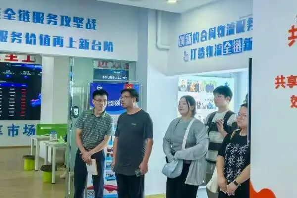 一进入共生物流,“共生物流工业互联网布局”展示墙就吸引了队员们的目光。墙上清晰展示了公司的业务版图,智能多式联运平台打破了不同运输方式之间的界限,物流SAAS平台帮助企业实现数字化管理,一幅智慧物流生态的图景正逐步清晰。企业领导向团队介绍了公司独特的B2B2车全链模式,这种模式让业务全流程公开透明,消除了中间差价模糊问题,还建立了增盈利润共享机制。“创新模式”板块从新模式、新经济、新产物、新技术四个方面,生动地解释了“碰货为要、数据为先”的价值重构理念,“人工智能产品——物流数字调度员”充满科技感,自然语言发单、自主制定调车计划等功能,让队员们直观感受到了智能体在物流调度方面的高效能力。