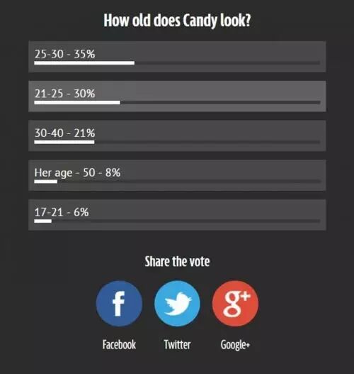 为此,外国网友还发起了,猜测她的真实年龄,大部分人都认为她应该在30岁以下,甚至还有6%的人认为她在17—21岁之间。