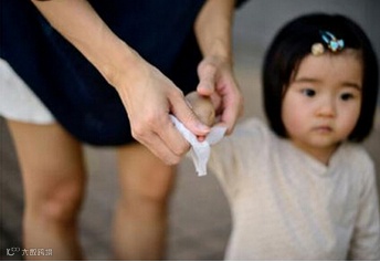 李小姐经常用湿巾给孩子擦手,没想到孩子却因此得了肠胃炎。