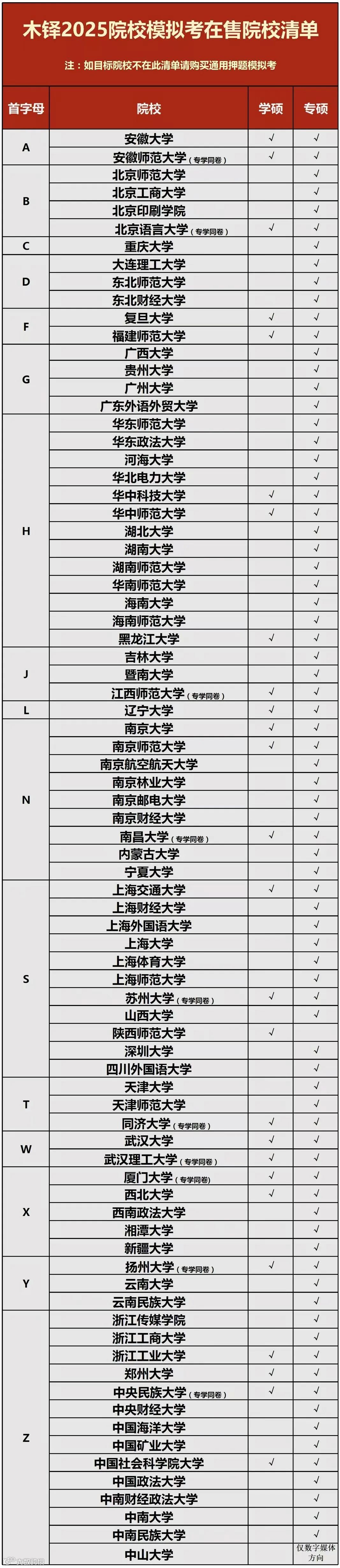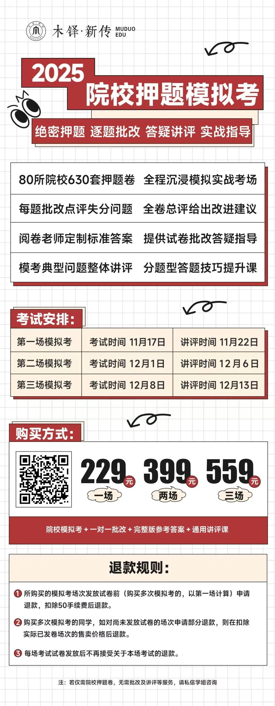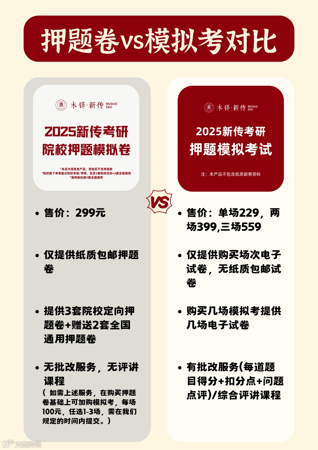 针对同学们后续备考需求不同,木铎分别推出【院校押题模拟卷】与【院校押题模拟考】两项不同的服务,同学们可根据自己的实际情况购买。