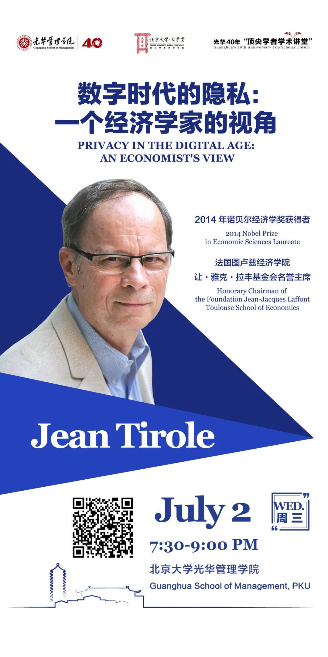 In today's digital wave, every click, every post, and every search we make leaves behind traces of data. Privacy, once a seemingly solid fortress, has become precarious under the impact of the digital age. On one hand, we enjoy the convenience brought by digital technology; on the other hand, we are deeply worried about the security of our personal information. Jean Tirole, a renowned French scholar who won the Nobel Prize in Economics in 2014, will be the lecturer at this issue of “Guanghua's 40th Anniversary Top Scholar Forum” on night of July 2nd, 2025, who use his profound academic attainments and keen insights to dispel the thick fog of privacy issues in the digital age for us. The event is part of PKU Global Fellowship.