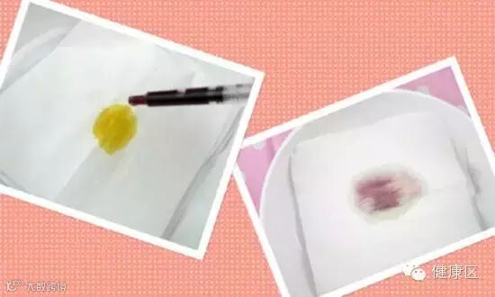 先用针管滴1—2滴稀释后的碘酒在白色的餐巾纸上面,碘酒会迅速把纸染黄。